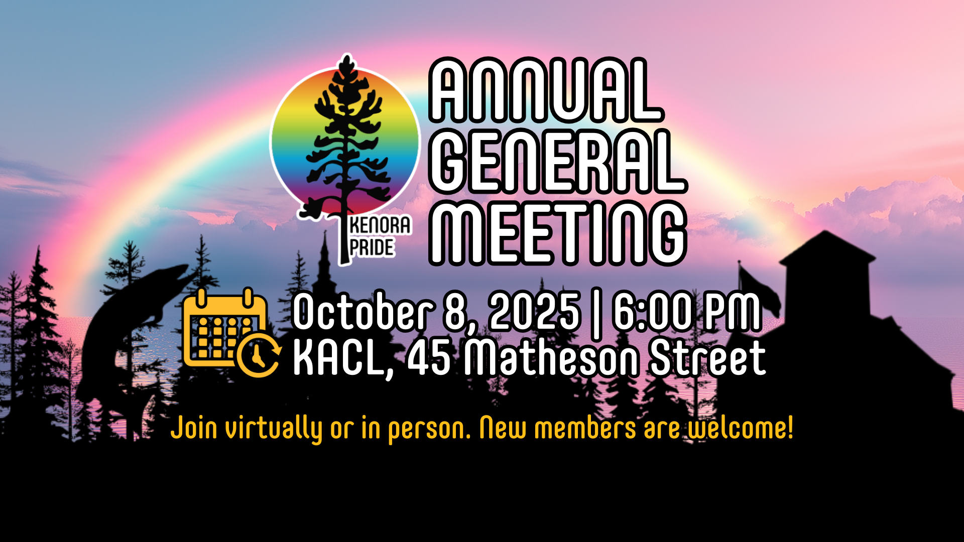 We’re getting ready to celebrate the 11th Kenora Pride in June of 2026 and it all starts with you! Join us for our Annual General Meeting as we kick off planning another incredible year of Pride in Kenora.